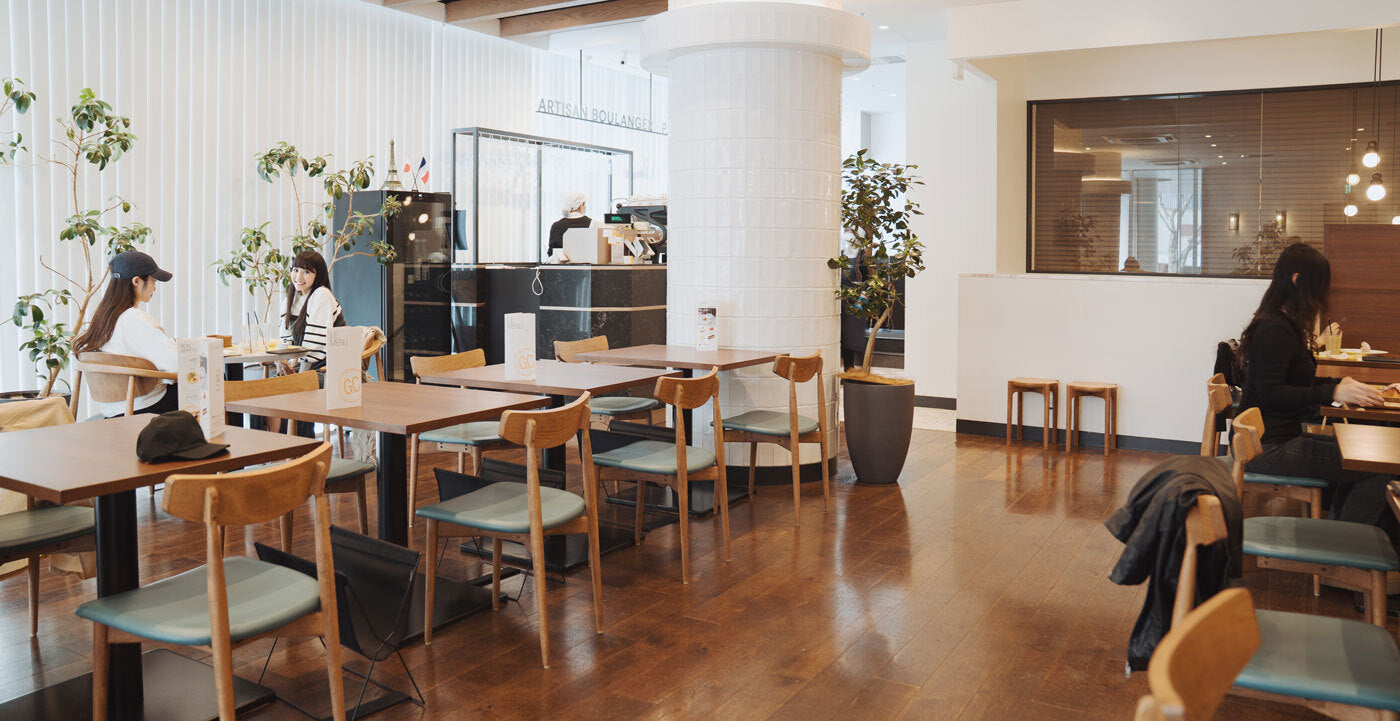 1階にはテラス席を備えたベーカリーがあり、2階のカフェではブレックファーストやランチ、デザートなどを様々なシチュエーションでお楽しみいただけます。